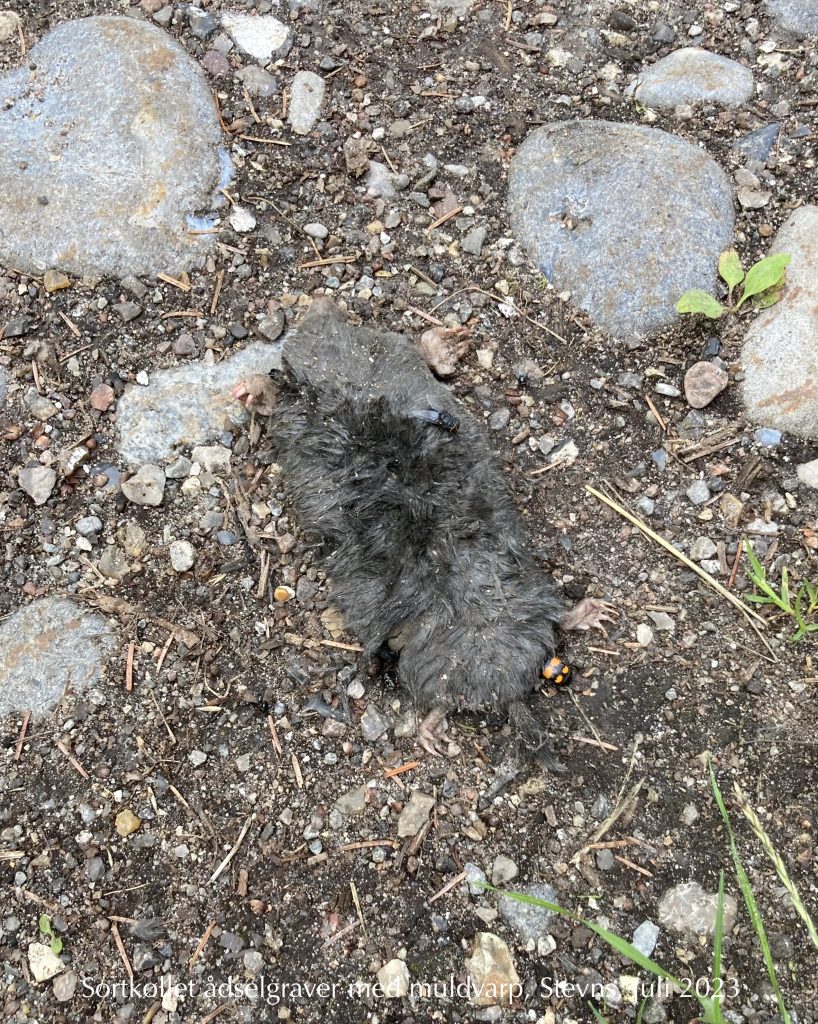 Billedet er knipset fra min uundværlige ledsagebog Insekter i Danmark af Morten Hansen og Ole Jørgensen. Jeg låner det lige et øjeblik. Fordi det er simpelthen det bedste. Jeg lykkedes aldrig med selv at få et billede af den skorpionflue, jeg fandt i min busk af hvid snerre. Jeg skal nok lade være med at gøre det igen 🙏.