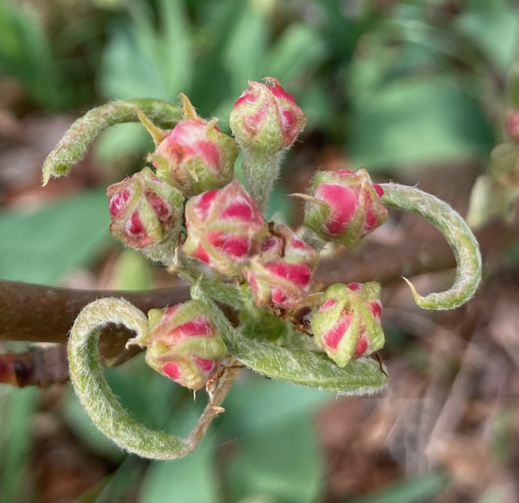 At se, helt tæt på, en hasselblomst.