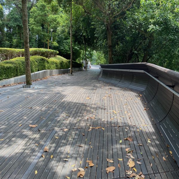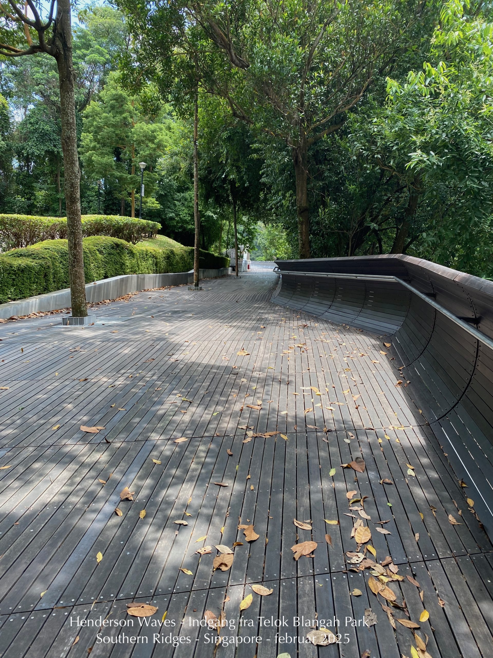 1955. Fire gangbroer opsat Mellem tre grønne øer Til trætopvandring: Den første på sporet, Henderson Waves, Et selvbevidst design Omhu i materialer; Denne højbro, svunget Over træer i fri dressur; Ikke bare dekorativ, næh, Mentalt regenerativ I sit udtryk og topografi; Mere end bare arkitektur, Den bro har ideologi Som en hængende park Og pilgrimsvandring Op og ud i biofili.