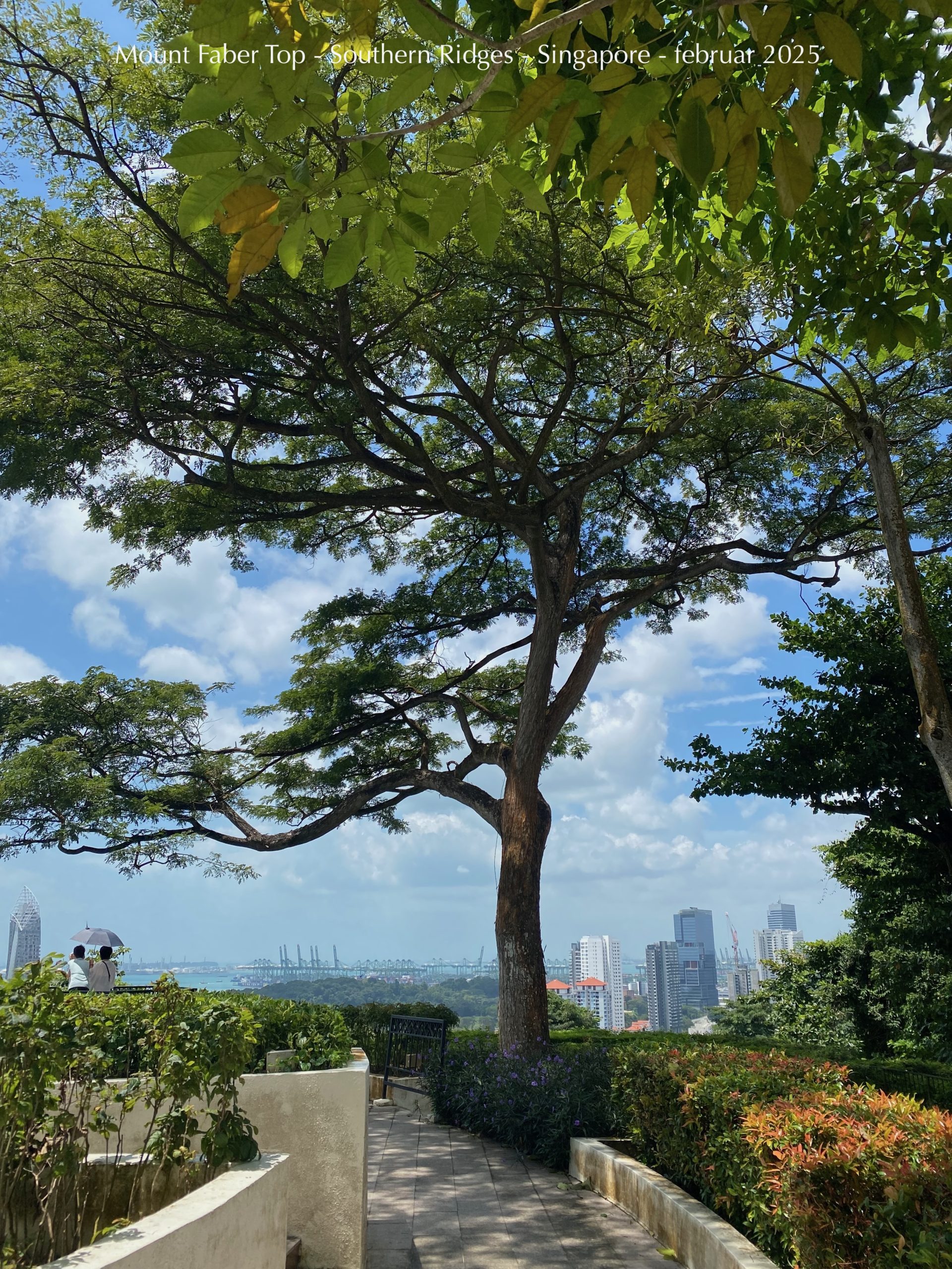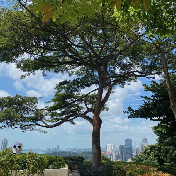 1956. Op gennem junglen Til Mount Faber ad stier, Langs tilrettede hække, Prydtræer sat i bede, Kantet af hvide sten; Vibrerende cikader, Enorme træer og blade I haveanlæg plejet Af byens oppasserklasse Sovende på bare fliser Nøgne fødder, en sko Aftaget til hovedstøtte En makker klemt ind På en havebænk stritter Med arme og ben Som haveredskaber. Tjenende træer, buske, Pergoaler i skygge anlagt Som wellness arkader; Ieg er her, siger træet, For at kysse din fod.